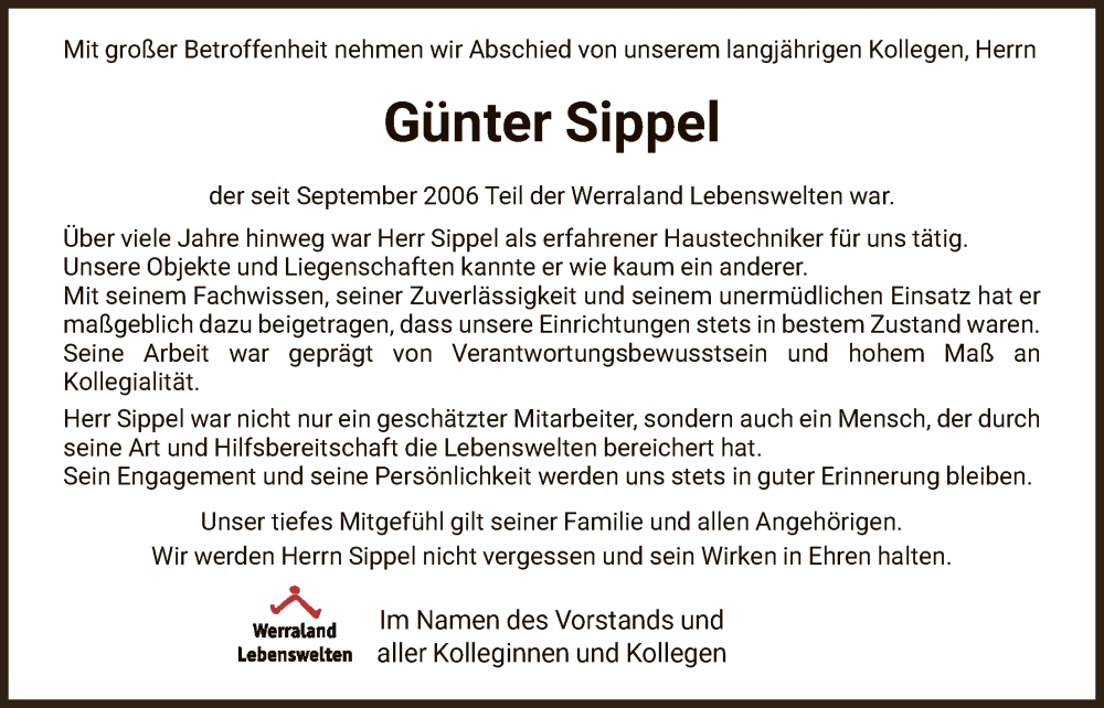 Hier finden Sie alle Traueranzeigen aus der Zeitung, die bisher für Günter Sippel erschienen sind. Weitere Traueranzeigen, die in der Zeitung erscheinen, werden hier ebenfalls aufgelistet