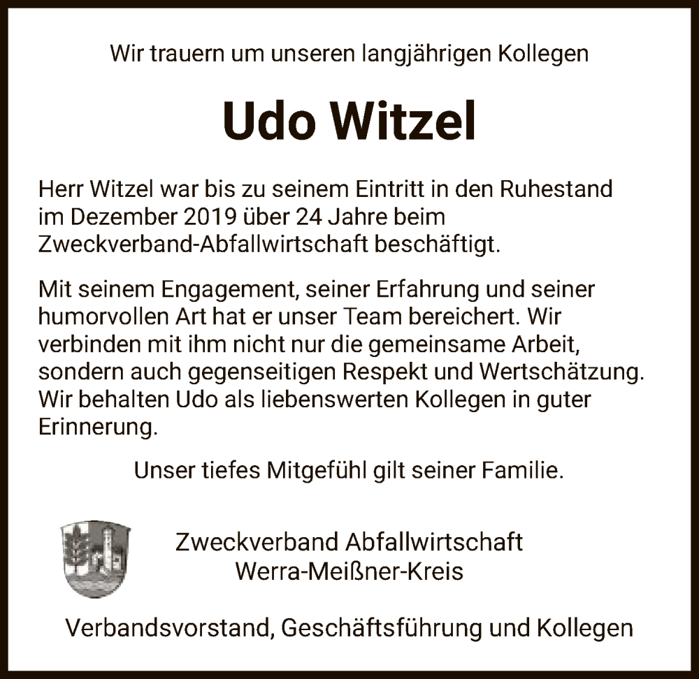 Hier finden Sie alle Traueranzeigen aus der Zeitung, die bisher für Udo Witzel erschienen sind. Weitere Traueranzeigen, die in der Zeitung erscheinen, werden hier ebenfalls aufgelistet